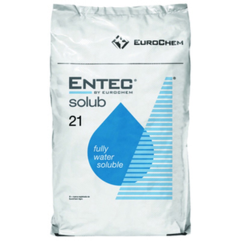 ENTEC® Solub 21 Tüm bitkilerde damlama ve yağmurlama ile uygulanabilecek ideal DMPP İnhibitörlü Amonyum Azotu %21) bir üst gübresidir. İçerdiği amonyum azotu ve alınabilir kükürt sayesinde topraktaki fosfor ve mikro element alınımı teşvik edilir. Toprak pH değerini düzenler.